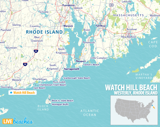 Map of Watch Hill Beach in Westerly, Rhode Island Live Beaches